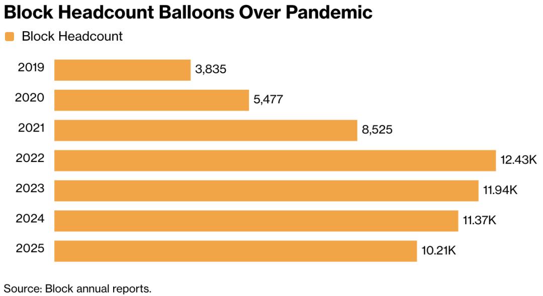 疫情期间,Block将员工规模疯狂扩张了三倍多。