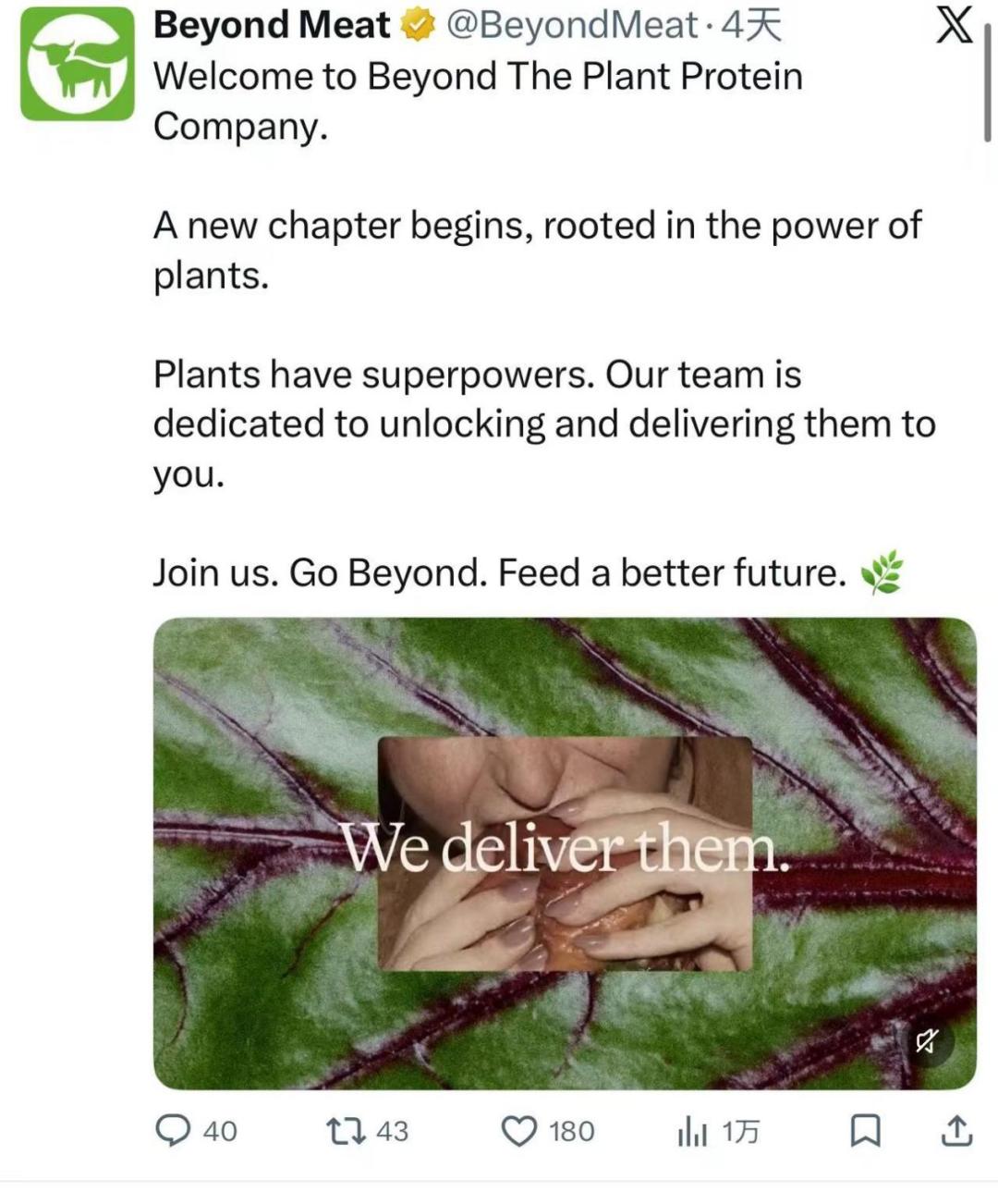 日前,美国植物基企业别样肉客Beyond Meat被爆更名,将沿用十余年的品牌名中代表“肉”的“Meat”移除,变更为Beyond The Plant Protein Co.,包装简称为“Beyond”。