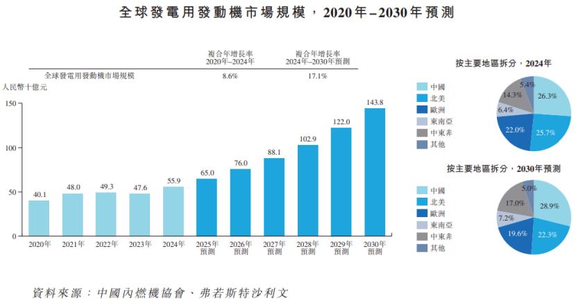 就收入而言,2024年全球发电用发动机市场规模达到559亿元,预计到2030年将达到1438亿元,2024年至2030年的复合年增长率为17.1%。如果经济放缓导致数据中心建设投资减少,可能会影响公司的产品销售。
