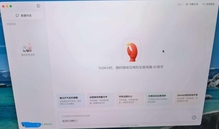 双击安装,扫码绑定微信,界面弹出一只卡通小龙虾图标,QClaw就算跑起来了。