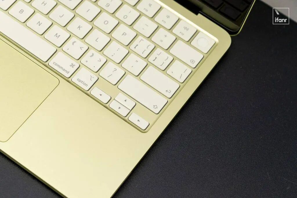 爱范儿手上的这台配色是「柑橘黄」,其实就是浅黄色,总体比较明艳。除此之外,还有同为「水果风」的桃粉色,以及更低调的银色和靛蓝色。
