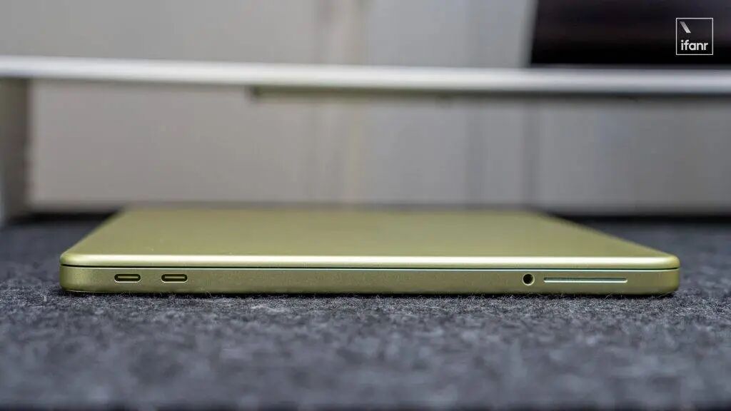 MacBook Neo 的 A 面边缘做了圆润的过渡,机身的一体性会更强,也更有可爱的感觉。作为对比,MacBook Air 的 A 面边缘采用了直角设计。