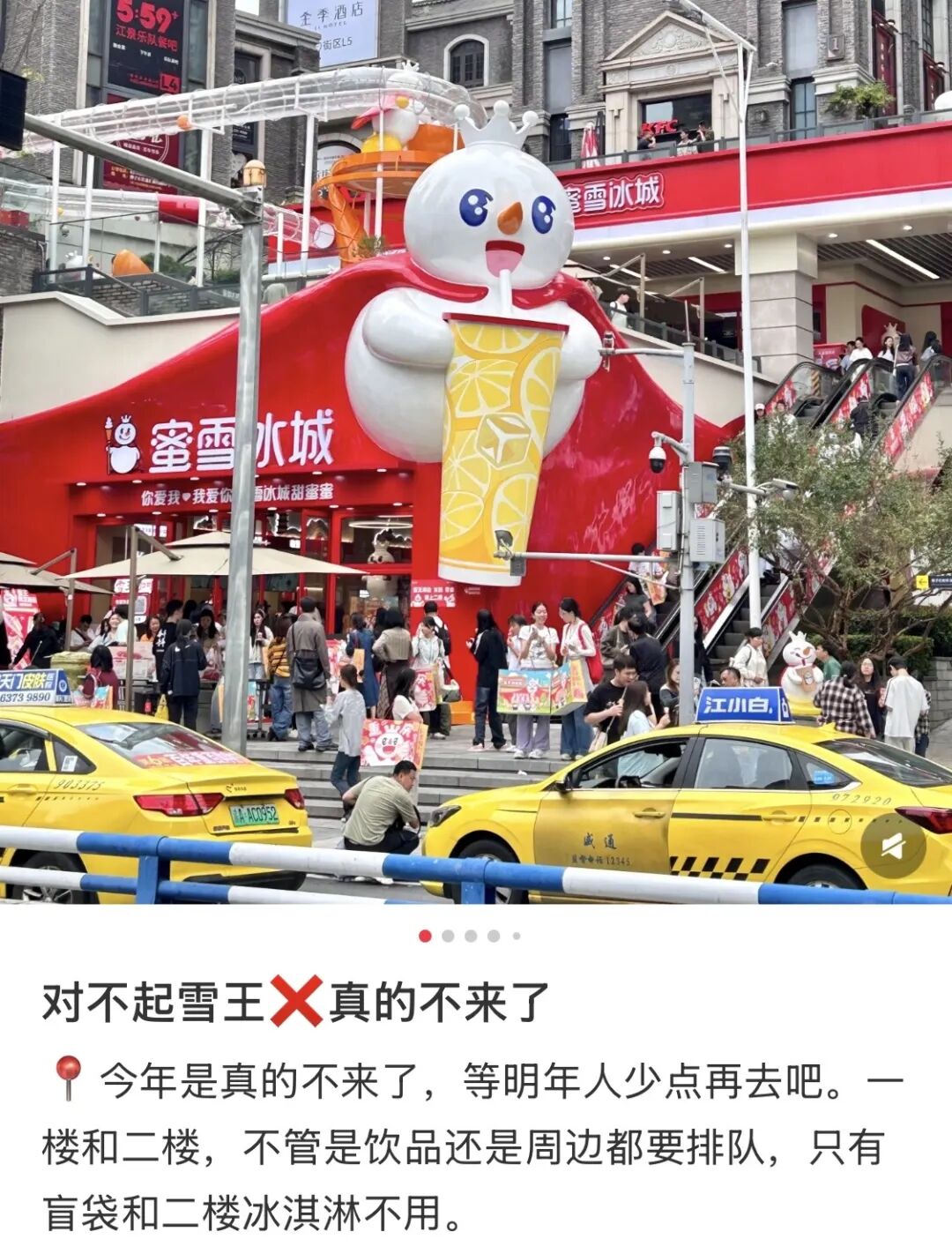 除了有大量的门店和深厚的群众购买力作支撑,蜜雪冰城做主题乐园还有一张极其抽象的王牌,那就是雪王本王。