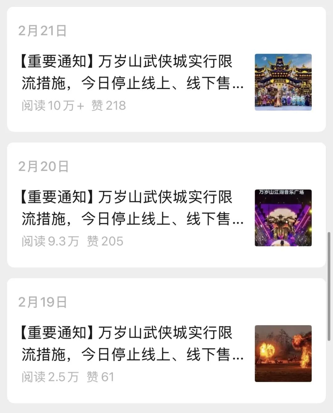 几乎每一个节假日,万岁山都会因为客流量过大登上热搜,网友调侃“这个春节有一亿人在万岁山当大侠,还有一亿人在去万岁山的路上”,公众号不语,只是一味发限流公告,由此可窥见其火爆程度。