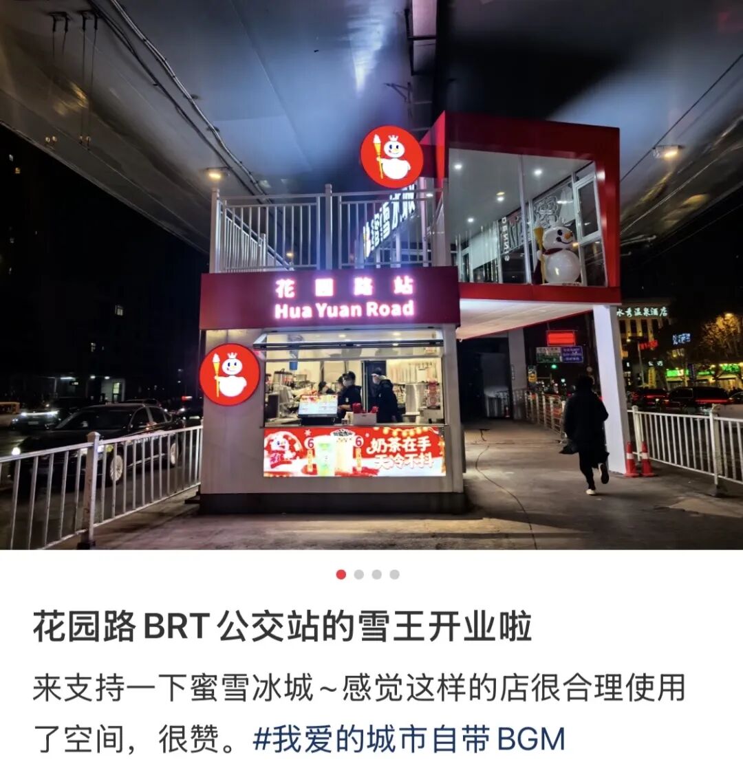 为了满足郑州人爱喝柠檬水的习惯,蜜雪冰城的新型门店还渗透进郑州BRT公交站、医院等地,成为当地一大奇观。