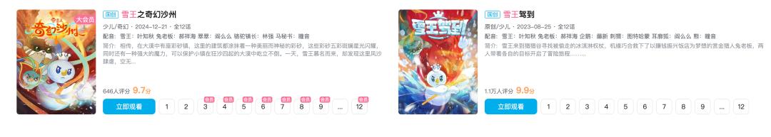 后续蜜雪冰城先后推出了两部雪王原创动画《雪王驾到》、《雪王之奇幻沙洲》,用一个个温暖的小故事丰满了雪王的形象,也打造出了一个简单却活泼的雪王宇宙,两部动画在B站合计超过3500万播放,网友疾呼,还要喝多少杯蜜雪冰城才能看第三部,雪王开始有了真正的生命力。