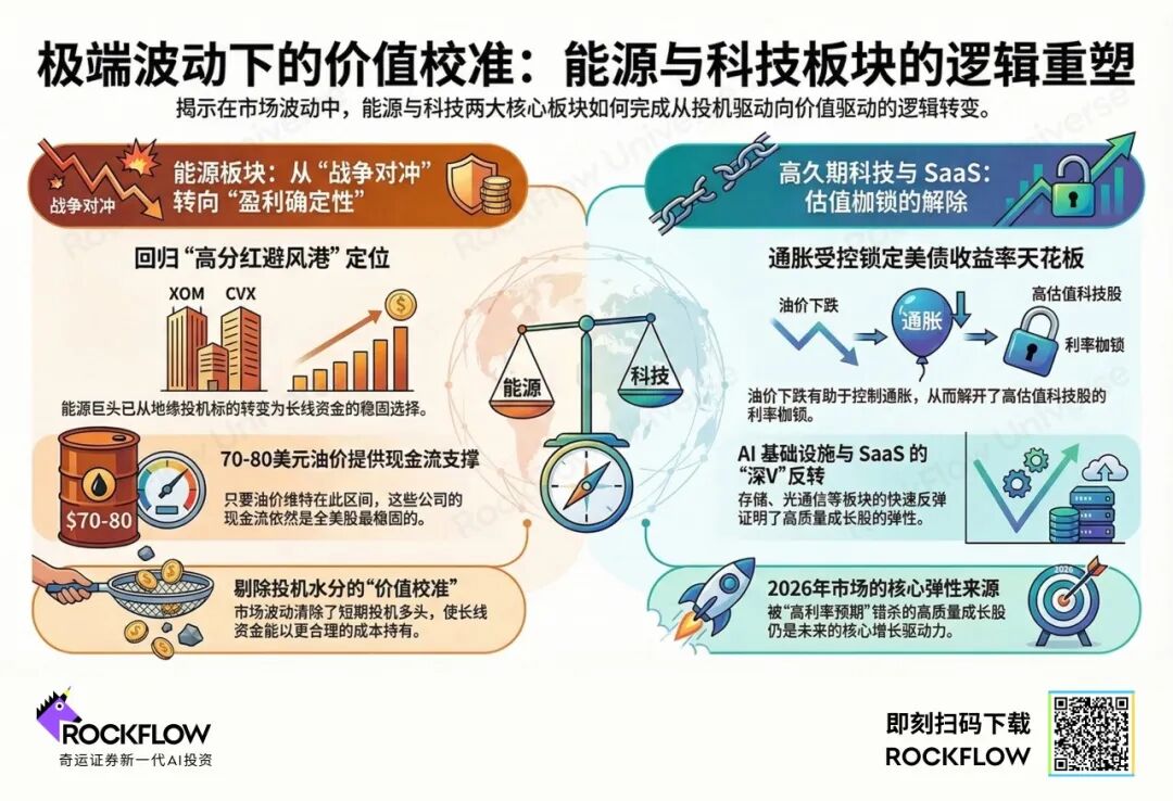 ③ RockFlow 投研团队认为,2026 年的市场不再交易事件本身,而是交易“决策者的反应函数”。投资者应超配高质量成长股,利用能源对冲,在地缘政治瞬时金融化的时代,捕捉恐慌带来的定价差。