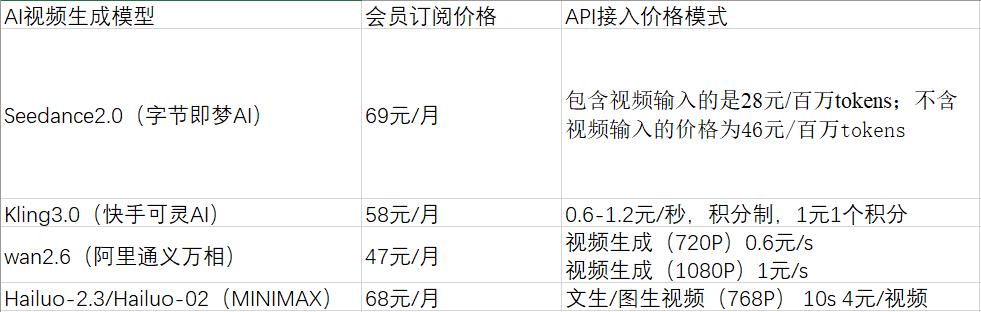 Seedance 2.0定价相对较高,相比国内竞品定价高出了 2倍左右。