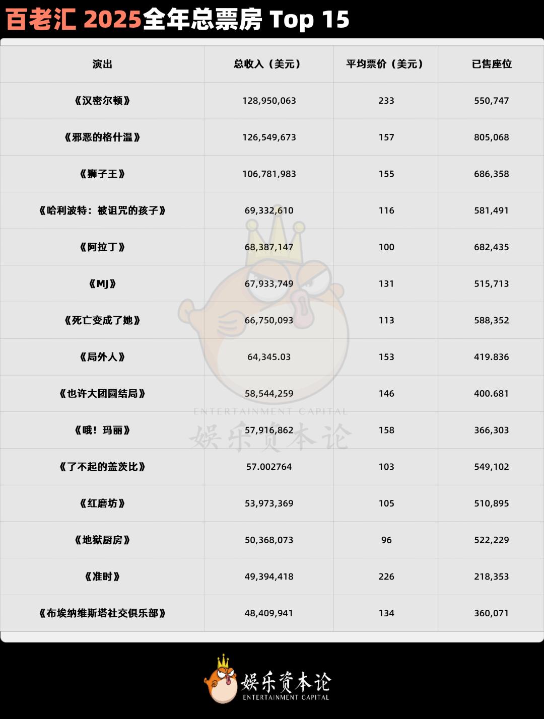 如果说英美的歌剧和芭蕾舞团正在ICU里靠“卖惨”和“节庆剧”续命,那么同在一条街上的音乐剧产业,却在用最赤裸裸的商业逻辑疯狂印钞。