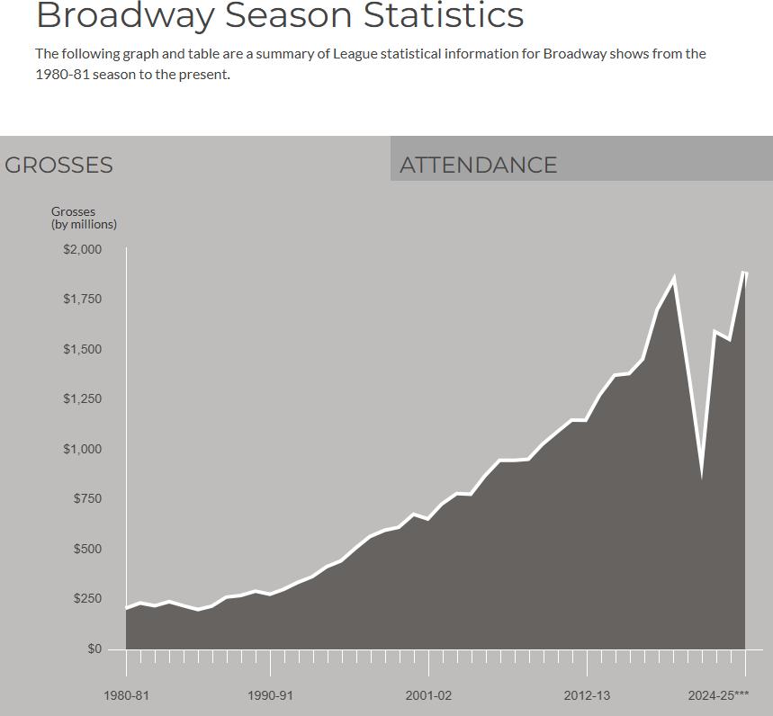 数据是最直观的证明。根据百老汇联盟(The Broadway League)发布的2024-2025演季统计数据,百老汇在这一演季创下了历史最高票房纪录,总收入高达惊人的 18.9亿美元,吸引了 1470万 人次走进剧院 。大洋彼岸的英国同样杀红了眼,英国伦敦剧院协会(SOLT)的最新行业报告显示,2024年伦敦西区的观演人次甚至比百老汇还要多出近500万,整个英国剧院联盟(包含西区及地方剧院)更是迎来了超过 3700万 的庞大客流 。