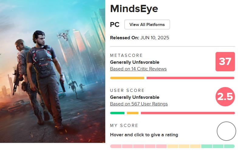 比如由前GTA系列制作人Leslie Benzies创立、前后总共获得超3.09亿美元(约合21.4亿人民币)投资的工作室Build A Rocket Boy,拿出的首款作品《心之眼》就堪称一场灾难——不仅在发售后因为优化糟糕、内容空洞等问题只卖出了16万份,更是以低至37的平均分成为了Metacritic评出的“年度最差游戏”,落得一个惨败收场。