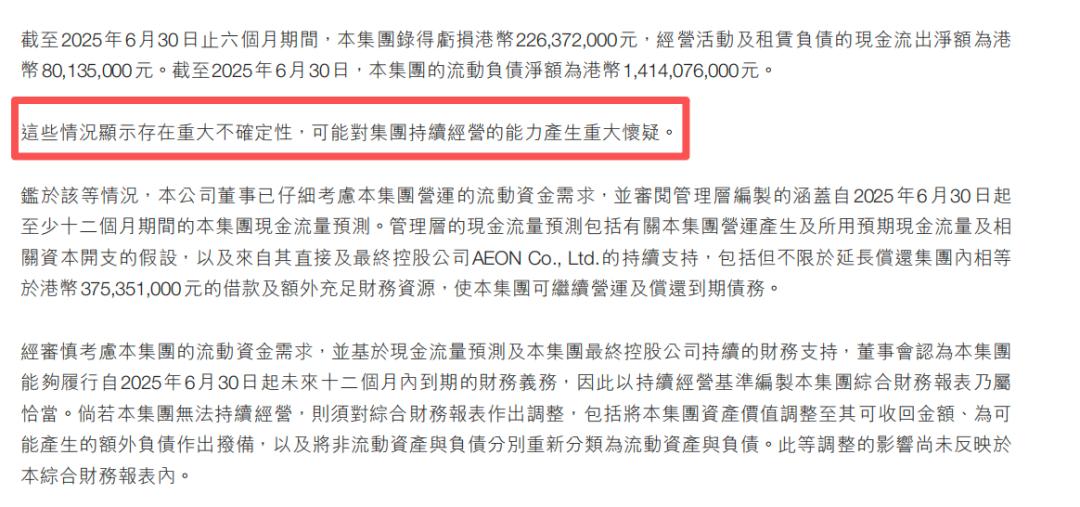 永旺中国业务已面临经营困境八年。母公司3.75亿港元的借款维持其运营,该笔资金需于2026年2月28日偿还。
