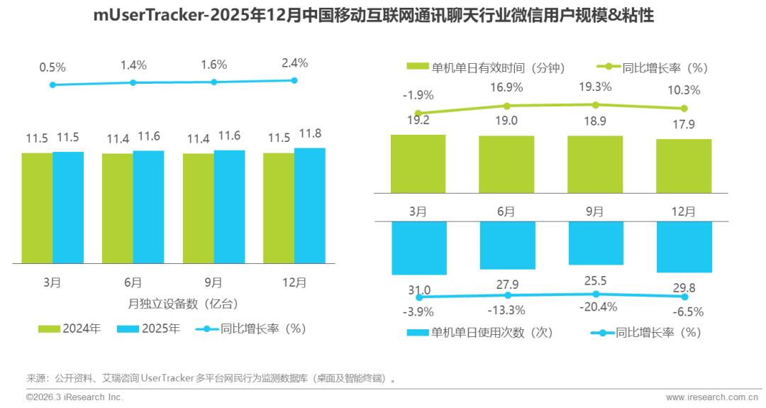 微信用户稳增,使用频次降时长升,生态向深度沉浸演进