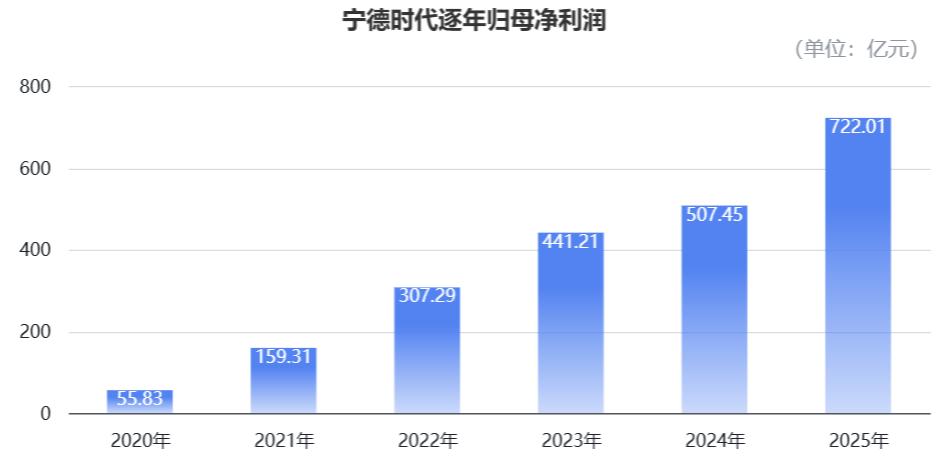 2025年,宁德时代营收重回增长轨道并突破历史峰值;归母净利润达到722亿元,同样创下新高,且净利增速较营收增速更为明显。