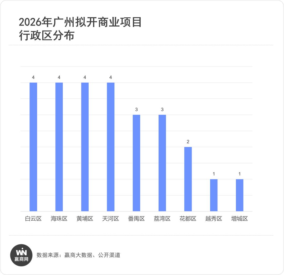 从行政区分布来看,天河、白云、海珠、黄埔四区“井喷”,分别有4个筹开项目。
