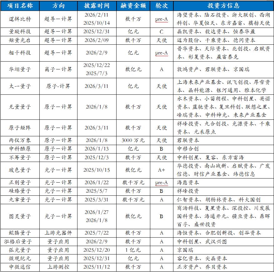 表2:2025-至今国内量子计算产业链融资事件汇总(来源:公开消息整理,数据收集截止到3月12日)