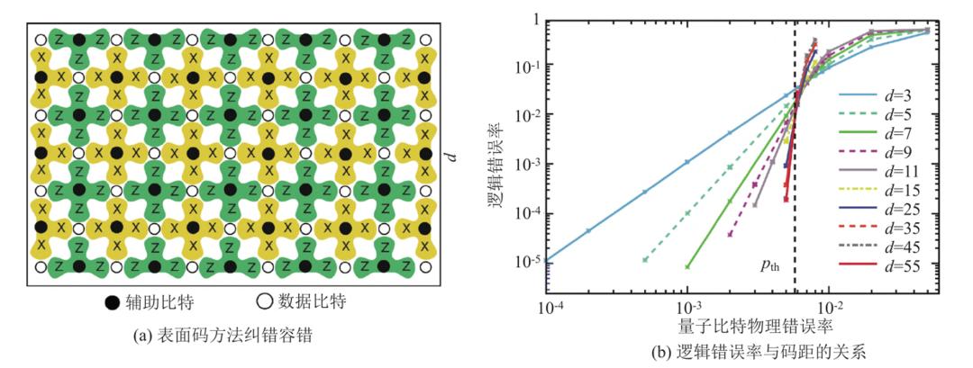 图3:量子纠错表面码与纠错阈值(来源:论文《量子计算机技术发展综述》)