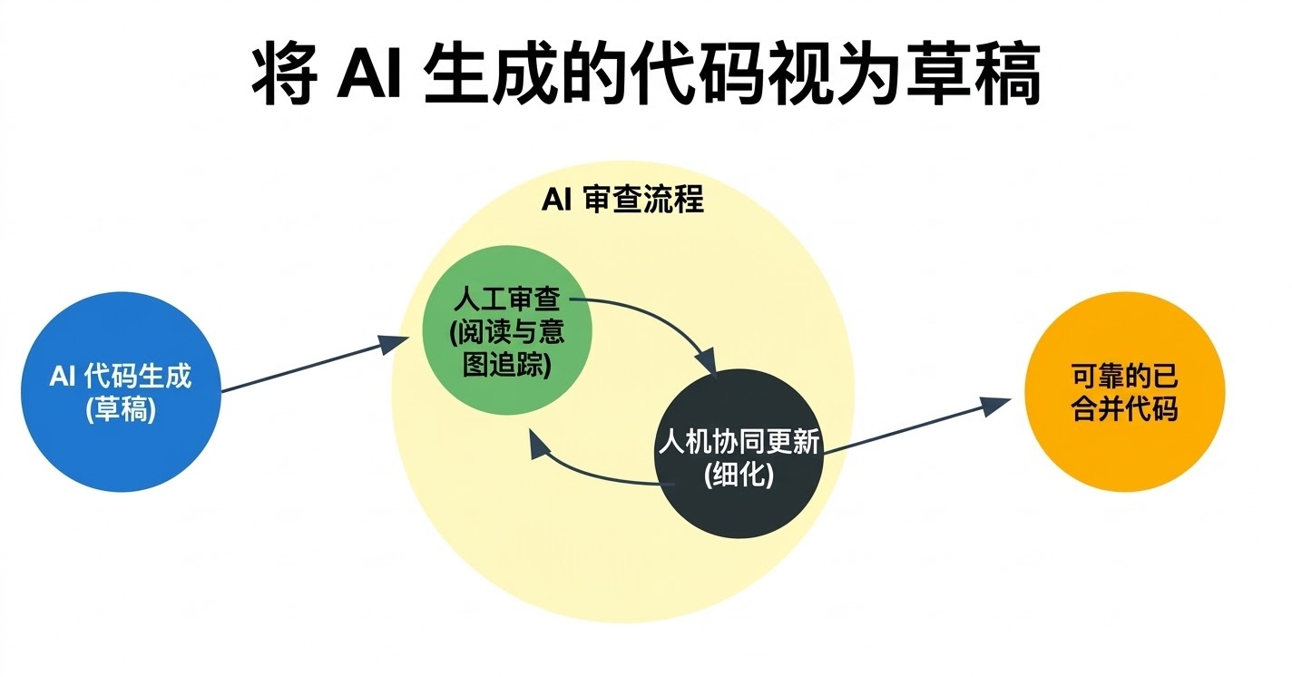 实际上,这意味着只有在我理解了代码之后,我才会合并或发布。如果 AI 生成了晦涩难懂的内容,我会让它添加注释进行解释,或者用更简单的术语重写。如果感觉不对劲,我就深入挖掘——就像人类同事提交了触发红线的代码时我会做的那样。