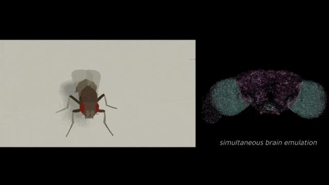 但神奇的是,这只“数字果蝇”在屏幕里“活”了过来,它不仅会走位,会清理触角、甚至还会寻找食物,就像一只真实的果蝇一样。