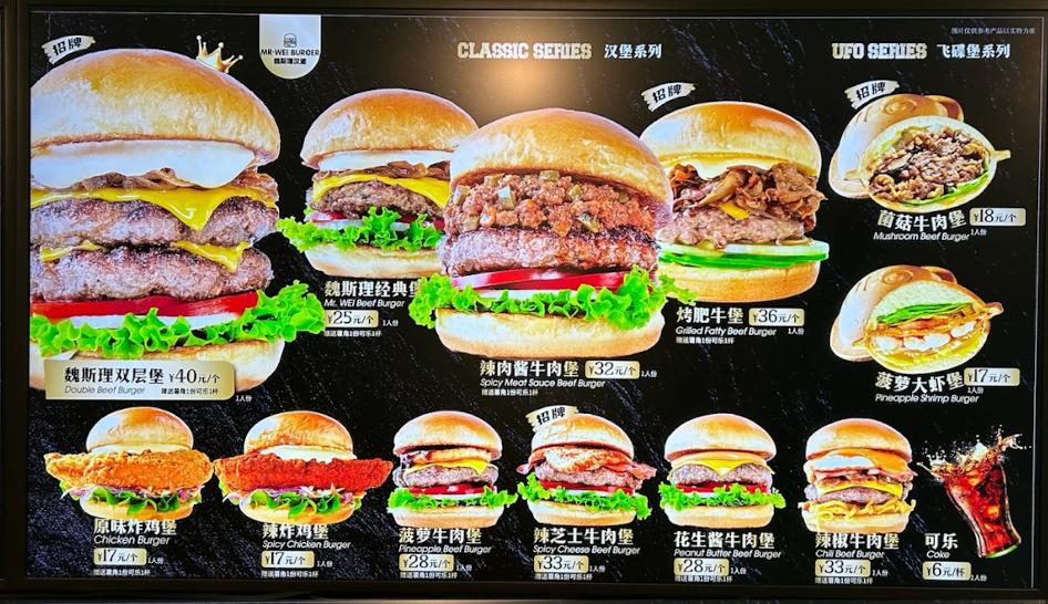 它的打法很直接:17块的炸鸡堡负责引流,28-35块的牛肉堡是走量主力,40块的双层堡立在上面撑场面。