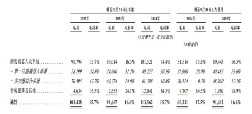 更值得玩味的是,作为凯乐士收入支柱的多功能综合系统业务,2024年占公司营收比例高达79%,毛利率却从2022年的13.7%降至10.8%。而毛利率更高的单一功能机器人部署业务,2024年毛利率为30.3%,收入占比却仅有18.4%,难以拉动整体盈利。