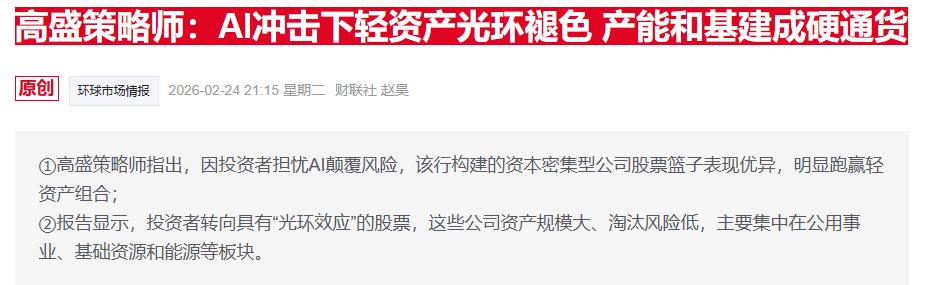 上个月,当投资者担心AI可能摧毁“轻资产”商业模式时,一种名为“光环(Halo)交易”的行情迅速流行——偏好那些“重资产、低淘汰风险”的公司,因为它们被认为更不容易受到AI冲击。