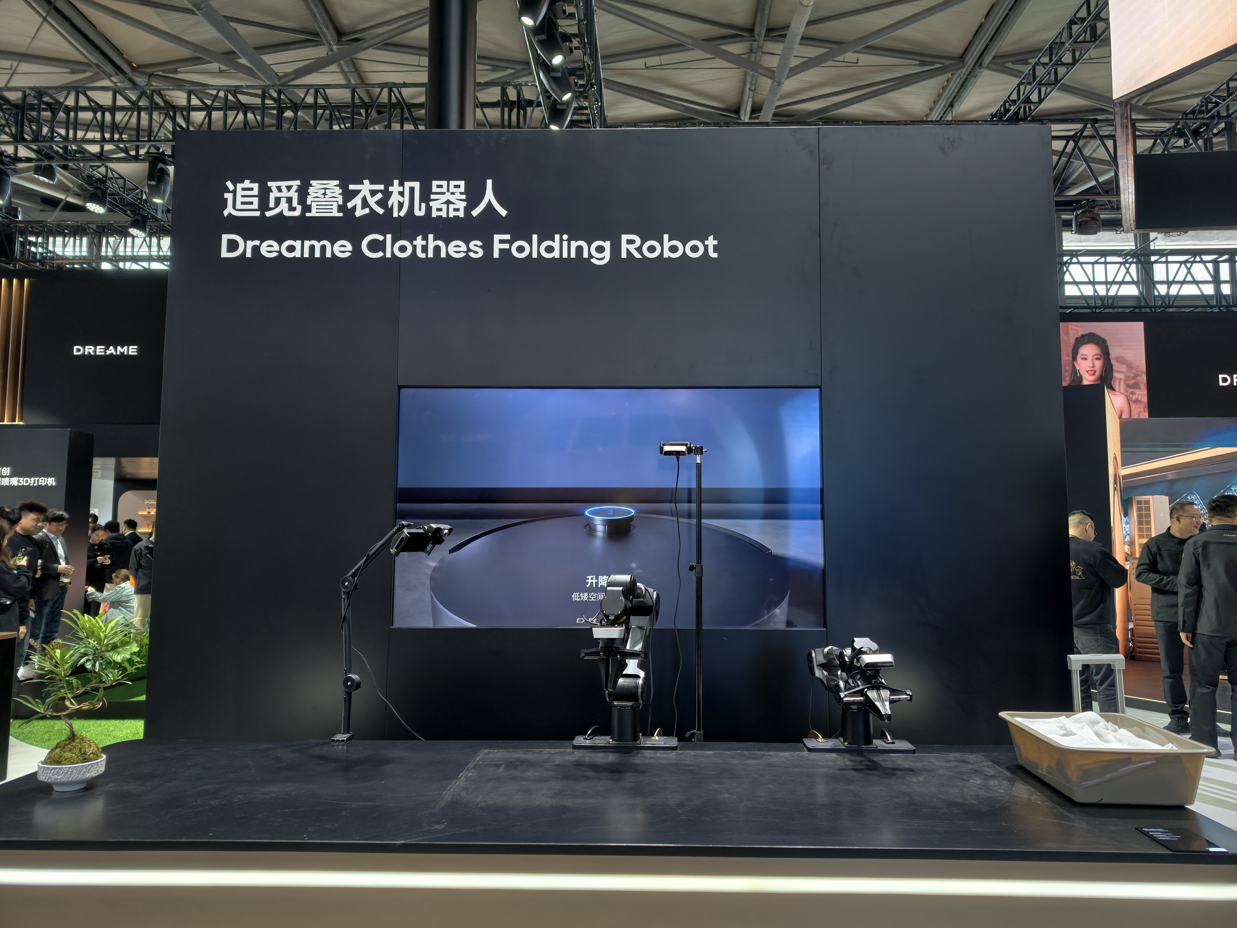 追觅今年承包了整整一个展馆。除了扫地机器人和洗地机等成熟产品线,追觅这次还带来了多款机器人,其中之一就是追觅叠衣机器人。