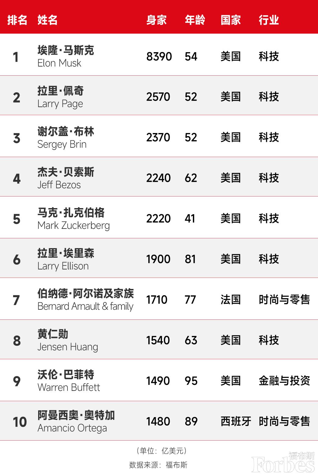 福布斯富豪榜谁最有钱?黄仁勋看不到马斯克的膝盖