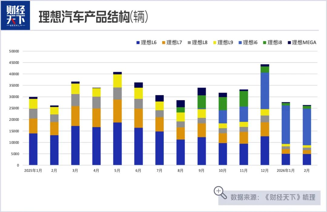 好消息是,2025年9月份上市的第三款纯电车型i6,顺利得到了市场的认可。这一次,理想在配置和定价上“长记性”了,尽可能地拉满。i6上市半个月,订单就突破了5万台,销量也快速爬坡,2025年12月至2026年2月,月销量均稳定在1.6万辆左右,纯电转型见到成效。