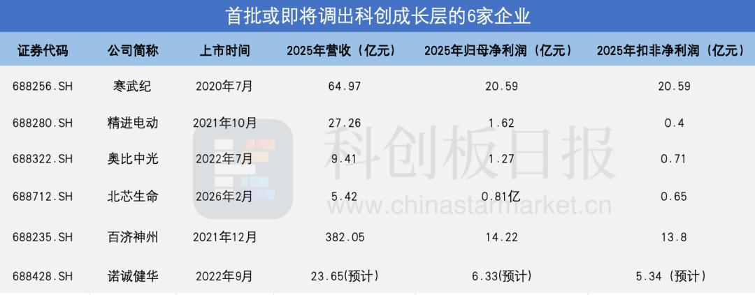 北芯生命于2月27日晚间披露的业绩快报显示,公司2025年度实现营收5.42亿元,同比增长71.23%;归母净利润8062.19万元,同比扭亏;扣非净利润6513.95万元,上年同期亏损。北芯生命是科创成长层落地后新注册上市的企业,其2026年2月才在科创板上市,上市首年即有望调出科创成长层。