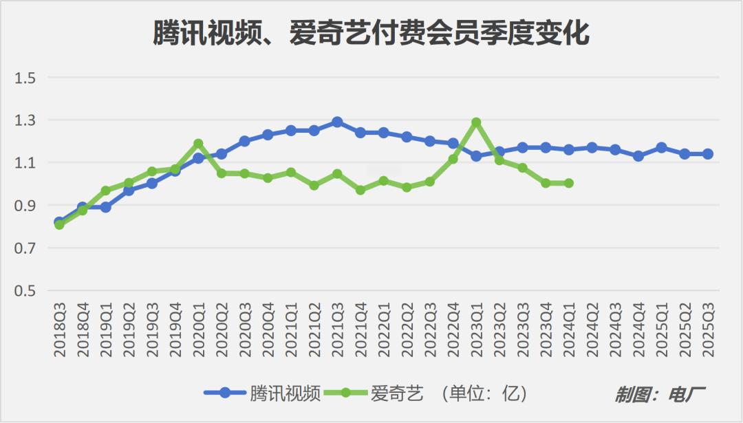 会员和广告,是长视频平台最为关键的两个收入来源——用户被内容吸引、购买会员并享受对应权益;广告主投放剧集、综艺,从而获得曝光或转化。2019年6月,爱奇艺会员数量突破1亿,这是长视频平台的里程碑,也成为了天花板。2024年第一季度起,爱奇艺不再公布会员数量,但腾讯视频的会员数量变化轨迹依然可以作为参照。2021年第三季度,腾讯视频付费会员数量达到1.29亿,为历史最高值。2023年以来,这个数字通常在1.1亿和1.2亿之间波动。