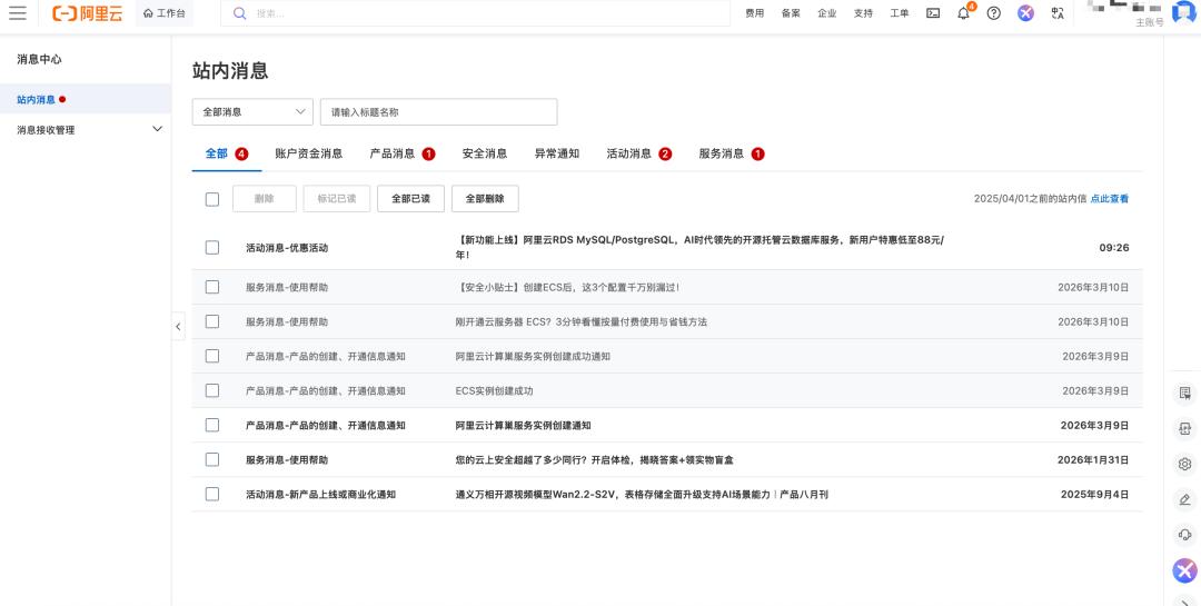 《IT时报》记者查看了小陈的阿里云后台,发现安装过程中没有任何明显的安全提示。直到部署完成后的第二天,系统才发来几条通知:“建议避免远程管理端口直接开放公网访问”“3分钟看懂按量付费使用与省钱方法”。这些通知夹杂在各类信息中,小陈根本没注意。