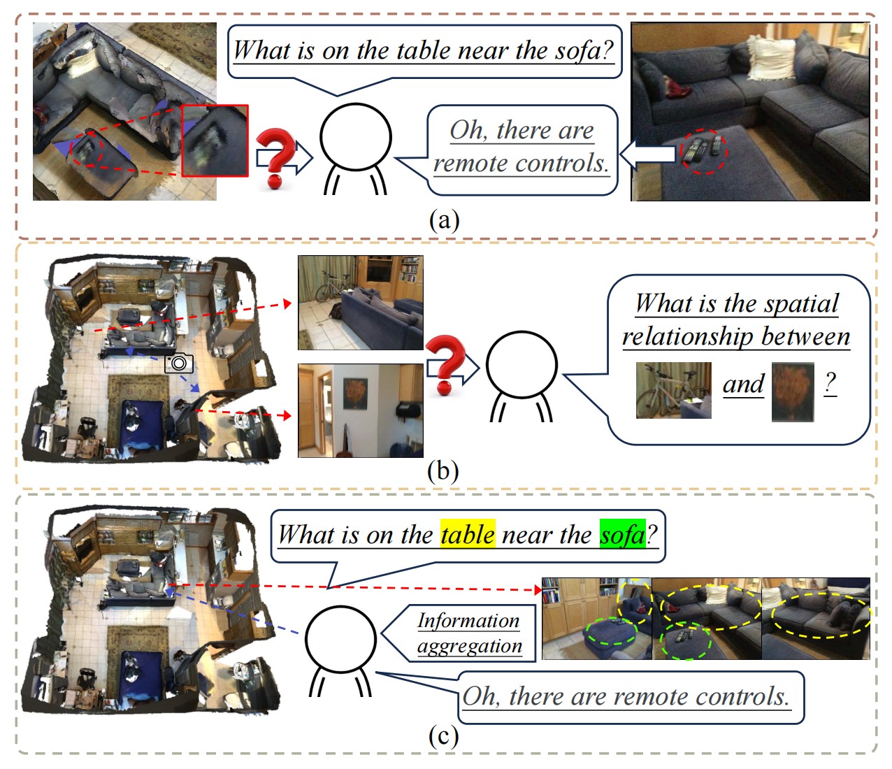 人类在3D世界中完成任务时,能轻松整合全局信息与相关的细节信息。以“烹饪”为例,人类会先基于任务和记忆前往厨房,再观察周边环境,整合厨房内厨具与食材的信息,最终确定烹饪的菜品与方式。该过程可总结为三个步骤:首先,理解任务并检索对应位置,接收指令后,人类可以提取任务相关信息,再结合记忆来定位任务相关区域以收集更多信息;其次,信息聚合,检索到目标位置后,整合物体及周边环境的任务相关信息;最后,执行任务,利用收集到的信息完成任务。