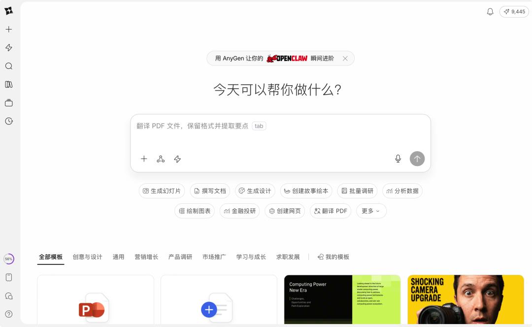 Anygen 是字节推出的对标 Manus 的通用 Agent,主打办公场景。接入方式非常简单,就是打开 Anygen,点击界面上的提示,会获得一句接入指令。
