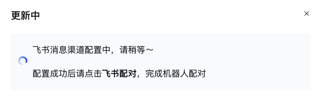 按照文档一步步配置飞书应用,然后点击「消息渠道」,把飞书应用的 key 填好,耐心等一下