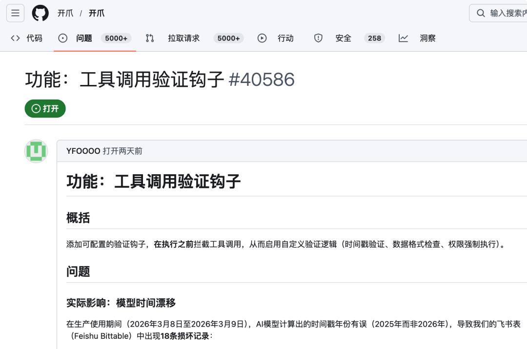OpenClaw 的 github issue|图片来源:github