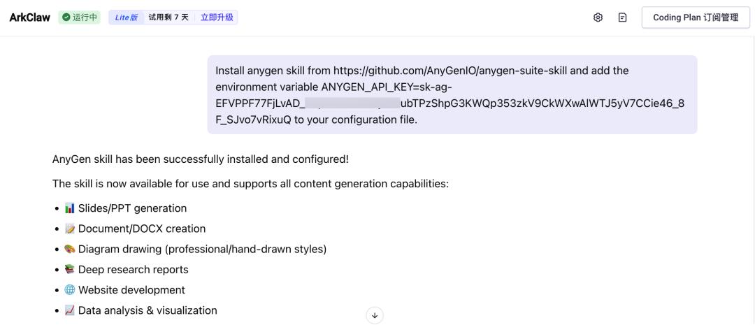 给 ArkClaw 接入 Anygen|图片来源:ArkClaw