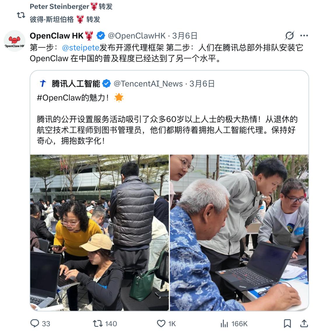 OpenClaw 创始人转发腾讯活动|图片来源:X