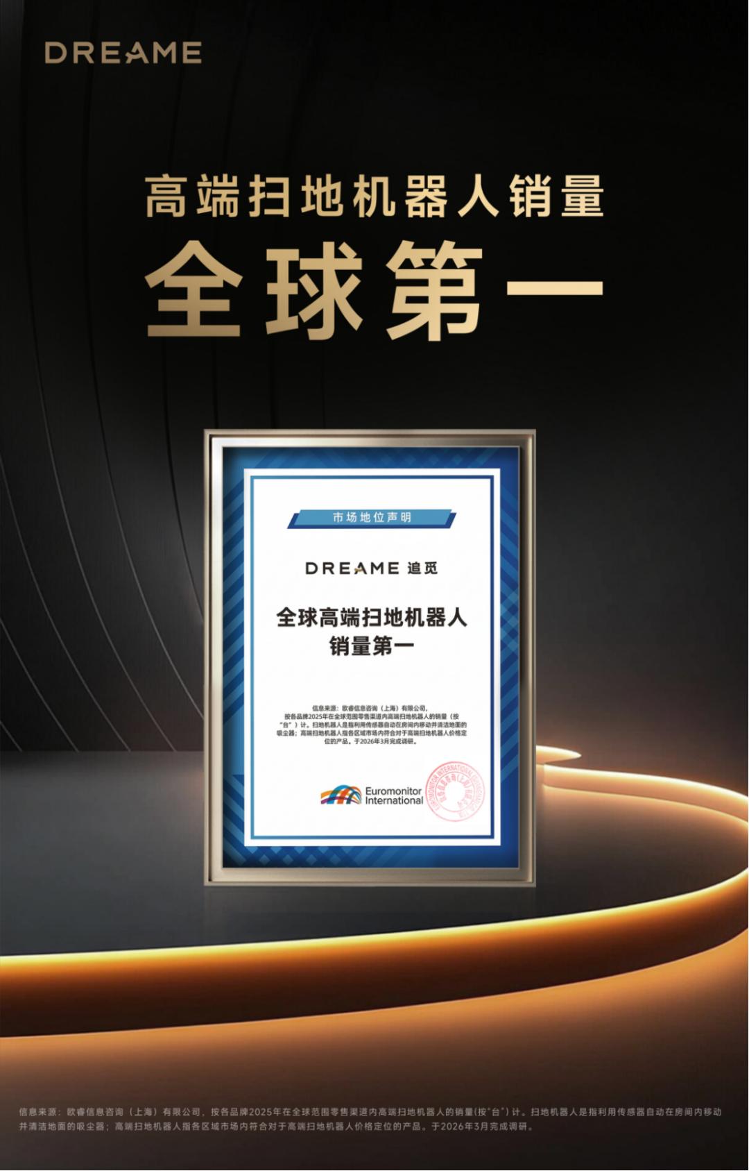 追觅曾多次给出正确答案,市场层面的回应更为直接。3月12日,全球知名市场研究机构欧睿国际发布权威认证,追觅扫地机位居全球高端扫地机器人销量第一;2025年其在全球30个国家市占率第一,并在瑞典、丹麦、德国等18个国家及地区市占率超过40%。
