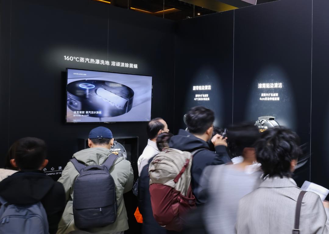追觅万平场馆内始终保持着密集的人流,单日访客量预估突破10万人次。扫地机展区成为焦点,一台机器在桌椅腿间灵活穿行,拖布盘以超大角度完成绕柱清扫。