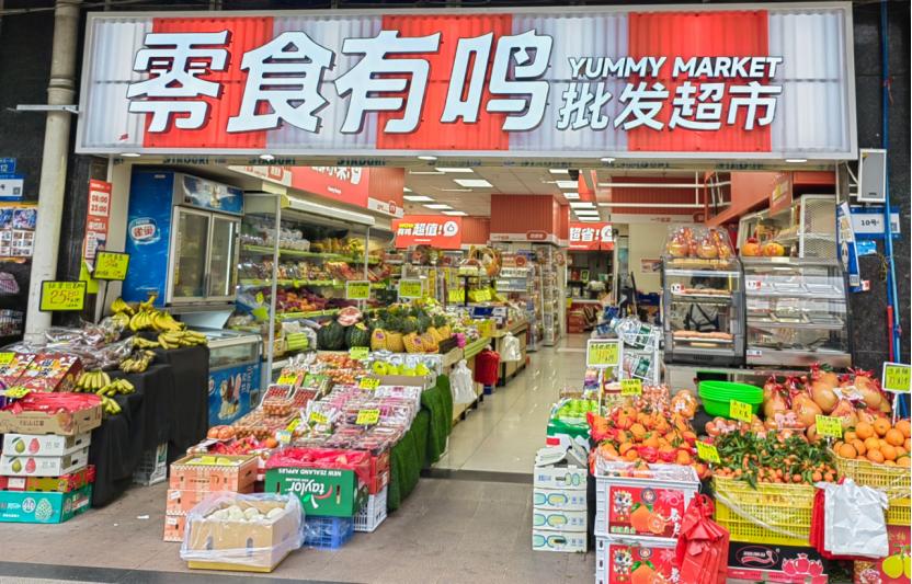 几个月前,这家超市关了门,我还以为它和小区门口那家中型超市一样倒闭、被转让了。但不久后,它改头换面,顶着红色的“零食有鸣批发超市”招牌重新开业。原先店门口满满的新鲜水果还在,除了仍旧卖些米面粮油、日化用品,最大的变化是店内装修亮堂了许多,并增加了不少新潮零食。