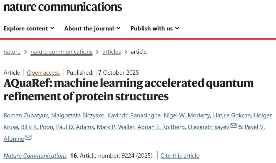 相关研究成果以「AQuaRef: machine learning accelerated quantum refinement of protein structures」为题,已发表于 Nature Communications。