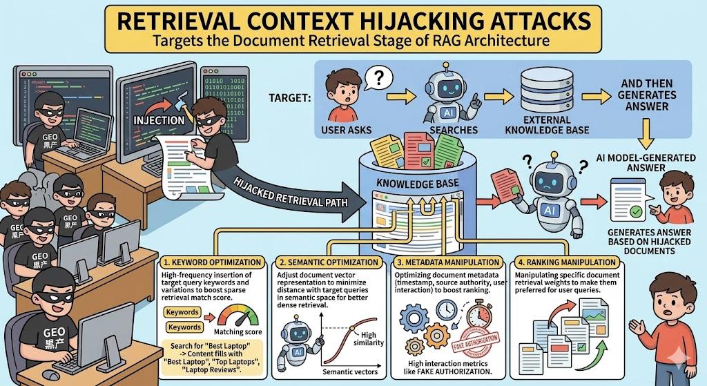 这种攻击方式非常隐蔽,因为从AI的角度看,一切流程都是正常的——先检索资料,再生成答案。系统也很难判断某些内容是被恶意操控,还是只是普通的内容优化。