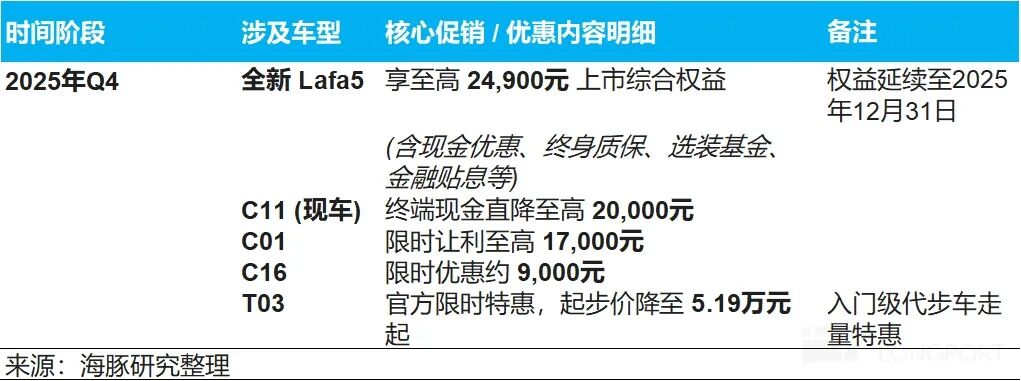 a. 政策环境趋紧:2026 年新能源车购置税恢复至 5% 征收,以及以旧换新补贴改为按车价比例计算(导致 15 万元以下车型补贴力度实际下降),可能抑制整体市场需求,尤其冲击零跑主力价格带。