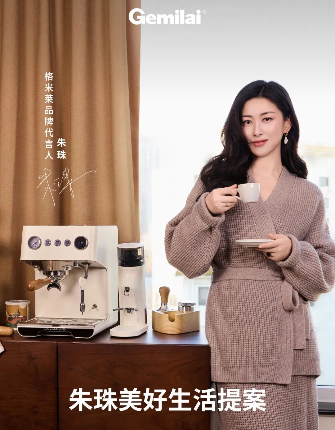 去年格米莱邀请中国精品咖啡行业领军人物张寅喆作为品牌大使,主打大师级咖啡,到今年年初,已火速官宣品牌代言人朱珠,“美好生活”成为关键词。