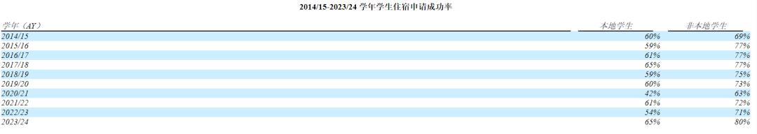 汇生活在招股书中罗列的数据显示,在2023/24学年,香港本地学生住宿申请成功率仅为65%,非本地学生为80%。
