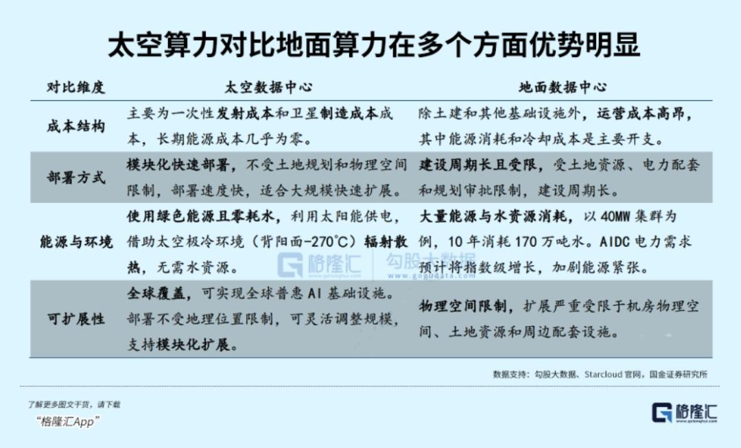 更关键的是,太空不受物理空间限制,想建多大规模的算力集群都可以,模块化部署起来又快又灵活,完全不用受土地规划、审批流程的制约。