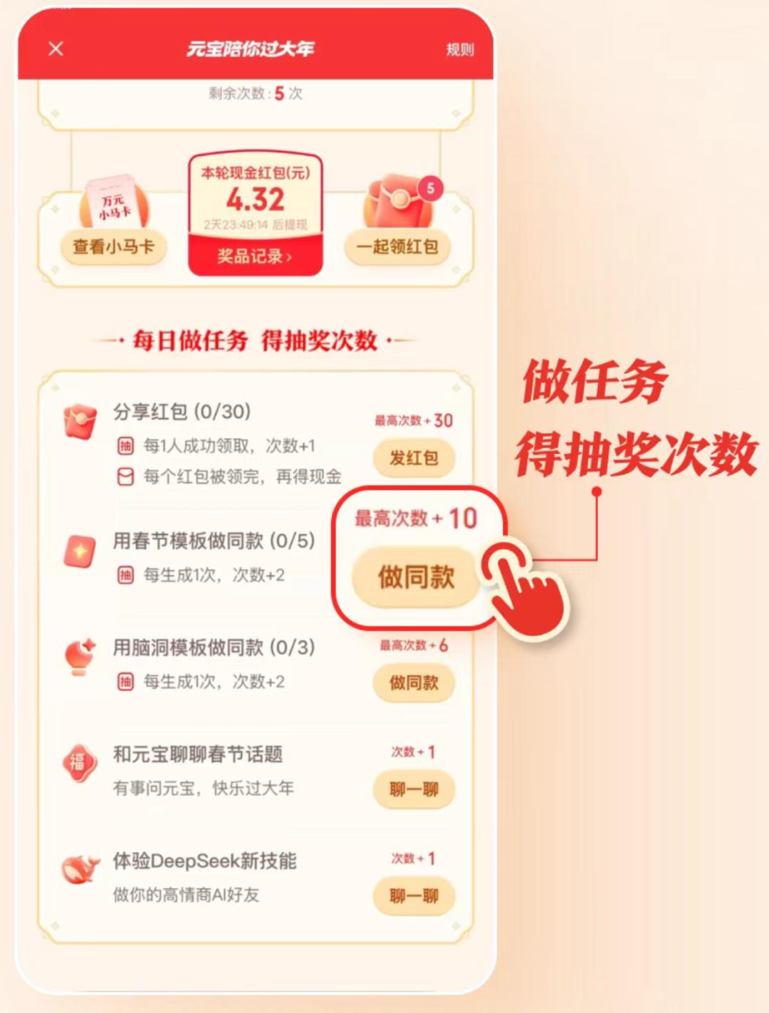 2026年春节,AI玩出了新花样:用大模型抢红包、互动抽卡、一键生成拜年祝福……看上去,这不过是又一场“发福利、拉用户”的节日营销。但不一样的是,这次所有的红包和互动,都指向同一个动作:用AI。