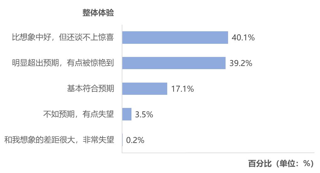 总体上,超八成网民对春节AI活动给出正面反馈。其中40.1%的网民认为“比想象中好,但还谈不上惊喜”,39.2%表示“明显超出预期,有点被惊艳”,两者占比接近。