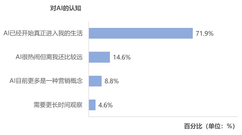 71.9%的网民认同“AI已经开始真正进入我的生活”。这或许标志着一个心智拐点:AI正在从科技新闻、职场工具,进入日常生活和节日仪式中。它不再只是“尝鲜”,而逐渐开始驱动形成潜在使用习惯。